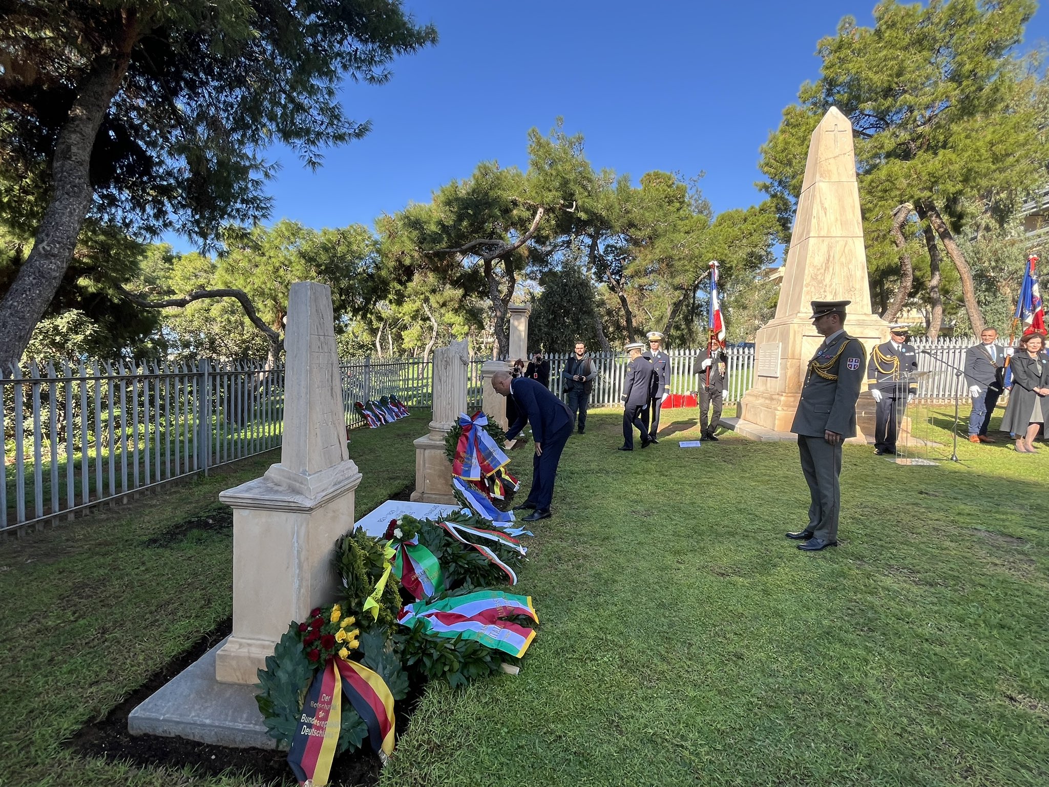 Поводом обележавања Дана примирја у Првом светском рату, амбасадор Републике Србије у Републици Грчкој Никола Недељковић, на позив амбасадора Републике Француске и Уједињеног Краљевства, присуствовао је данас комеморативним свечаностима на француском и британском војном гробљу у Атини.