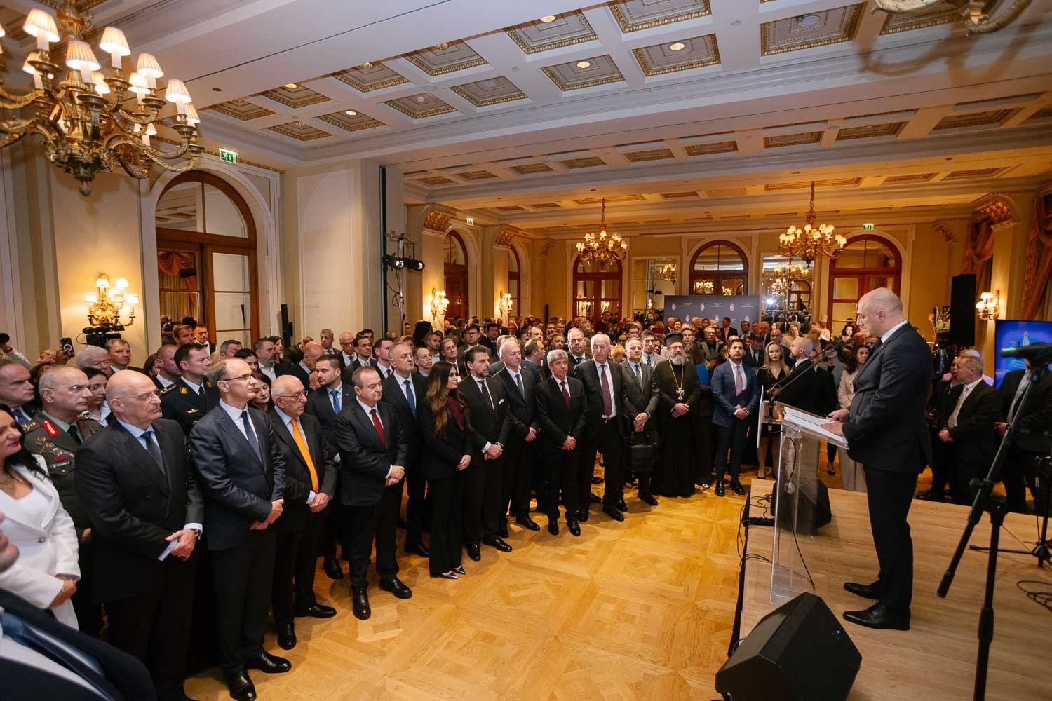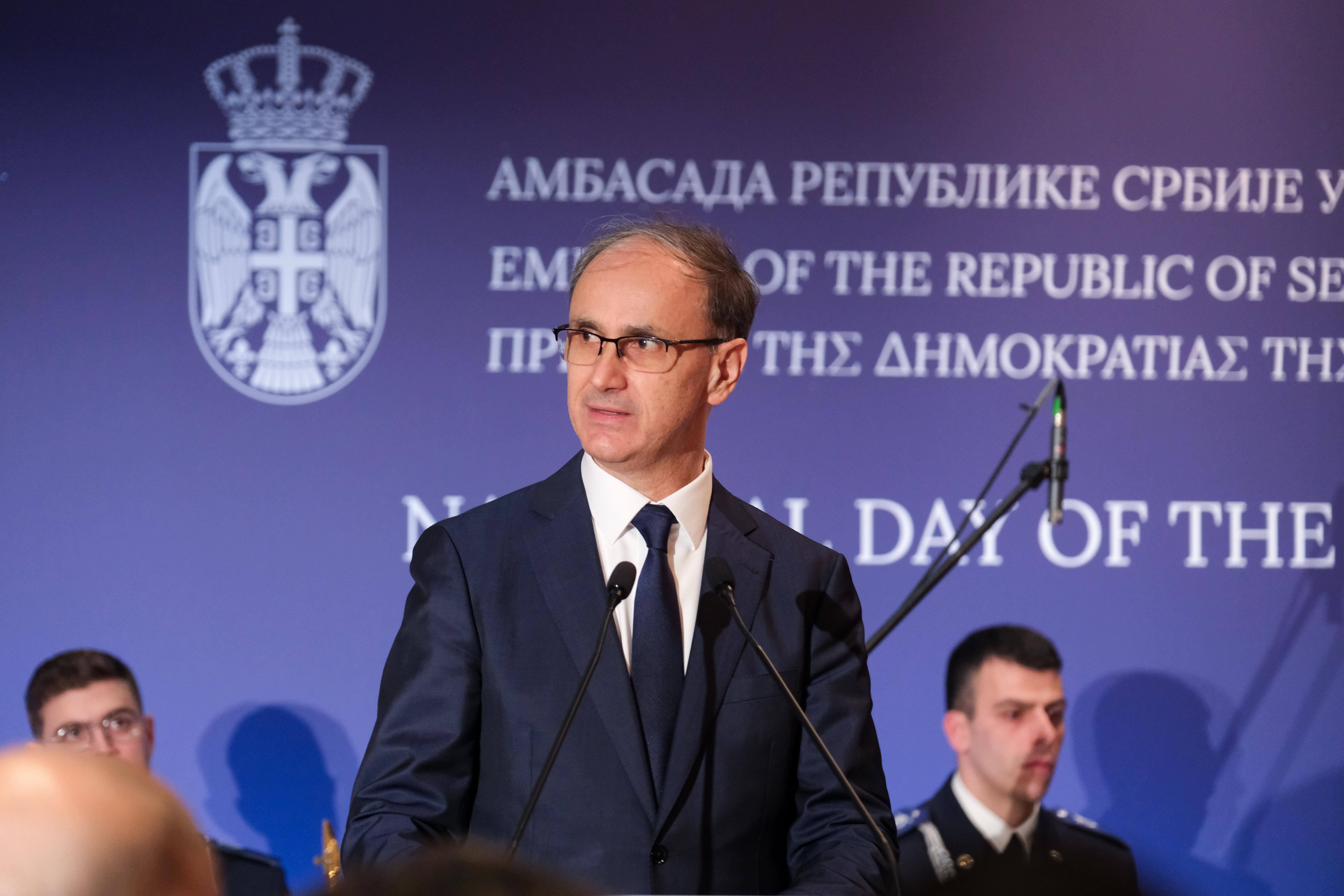 Присутнима се обратио амбасадор Републике Србије у Републици Грчкој Никола Недељковић, који је, у својству амбасадора и изасланика председника Републике Србије Александра Вучића, изразио захвалност грчком народу и Грчкој православној цркви на дугогодишњој подршци и пријатељству. Посебно је истакао захвалност политичком руководству и грчкој држави на доследној подршци територијалном интегритету и суверенитету Републике Србије по питању Косова и Метохије, као и на несебичној подршци европском путу наше земље. У свом обраћању, амбасадор је истакао да данашњи свет обележавају убрзани политички процеси и бројни изазови, те да је дипломатија потребнија него икада раније. „У времену конфликата и глобалних неизвесности, желим свим народима и државама да имају оно што Срби и Грци имају – искрено пријатељство и чврсте везе које трају кроз векове“, поручио је амбасадор Недељковић.